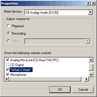 Select the "What U Hear" (or "Stereo Mixer" or whatever works on your system) channel, and exit the windows that you just opened.